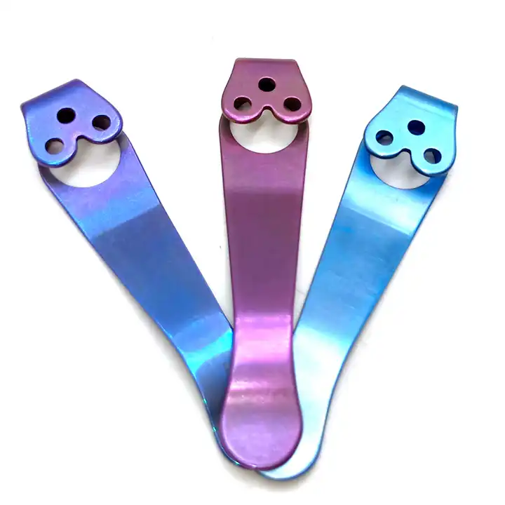 【ANODIZED FINISH】: Crafted from anodized Titanium alloy rather than painted, these Pocket Clip offer superior protection against rust and corrosion. The sleek finish not only adds an extra layer of durability, but also enhances the aesthetic appeal of your knife.
